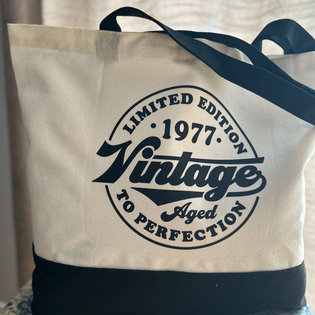 She'll love her new tote bag- perfect for groceries, an overnight getaway, trip to the park or beach! *year can be changed to match year she was born*