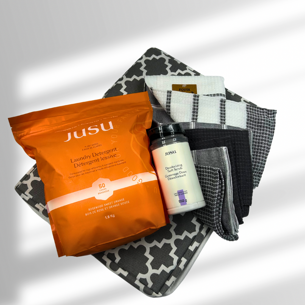 Give the gift of freshness with The Fresh & Fabulous Gift Set—a perfect blend of style and sustainability for any home. This beautifully curated hamper includes a stylish set of three tea towels, an all-natural laundry detergent for a gentle yet effective clean, and a deodorizing soft scrub that keeps spaces sparkling without harsh chemicals. Thoughtful, practical, and elegantly packaged, this gift is ideal for housewarmings!